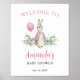 Watercolor Peter Rabbit Pink Baby Shower Welcome Sign. Matching items available.