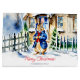 Peter rabbit in winter personalised template gift bag, a cute bunny in a blue jacket in front of snowy winter cottage