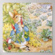 Peter the Rabbit eating a carrot in the cabbage patch garden.