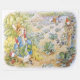 Peter the rabbit eating a carrot in Mr. Mc Gregor's vegetable garden.