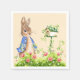 Peter the Rabbit in his little flower garden checking the cute bird house.