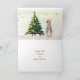 Peter the rabbit wearing a Santa hat with a Christmas tree