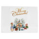 Peter the Rabbit in his Santa hat with cute Christmas elves bearing gifts