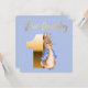 Peter the Rabbit with gold "First birthday" text with gold number one.