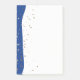 Post-it-Notes shown in white with a fun little petite Golden stars print design and a wave of colour down the side lengthwise. Wave colour shown in Royal Blue.