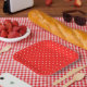 Paper party plates with tiny white hearts pattern on bright red background. Be sure to check out the rest of the petite hearts and bold colours paper collection.