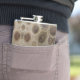 The flask itself is fine. It’s a cheap flask, obviously bought in bulk, however am prepared to overlook that. Given that it is a personalized item, I would have liked to have seen gift boxing instead of the generic packaging. Terrible printing, and/or quality. It’s a cheap, tacky vinyl. It is not cut straight and is also applied in a way that it is overhanging the bottom, causing the glue to catch on items and it will eventually roll and tear, damaging the wrap.