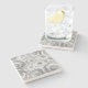 The coasters are gorgeous, a quality feel and heavy weight. They look like a precious archeological find. A rustic stone juxtaposed with a modern floral black and white print. I like the way the print goes slightly imperfect on the cut stone edges giving them a kind-of natural beauty.