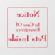 "Notice, In Case Of Emergency Pets Inside. Adheres to inside of window, will read correctly from the outside.
