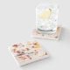 The coasters are gorgeous, a quality feel and heavy weight. They look like a precious archeological find. A rustic stone juxtaposed with a modern floral black and white print. I like the way the print goes slightly imperfect on the cut stone edges giving them a kind-of natural beauty.