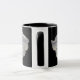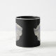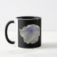This pretty mug features a photograph of a petunia flower that has been manipulated to make the centre of the flower glow bright blue. The outer petals are white and the veins running out from the centre of the flower also glow blue. The flower is on a black background to make it stand out. The design is shown on a black ringer style mug, but is also available on lots of other styles and colours of mugs.