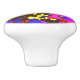 A vibrant blue, purple, red, yellow and black pop art design of petunias.