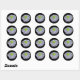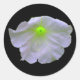 This sheet of pretty round stickers features a photograph of a petunia flower that has been manipulated to make the centre of the flower glow bright green. The outer petals are white and the veins running out from the centre of the flower also glow green. The flower is on a black background to make it stand out.