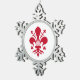 This beautifully crafted ornament showcases the iconic red fleur-de-lis emblem on a crisp white background—Florence’s timeless symbol of strength, elegance, and Tuscan pride. Shaped like a delicate snowflake and made from durable pewter, it blends winter charm with cultural richness, making it a standout piece on any Christmas tree or seasonal display.