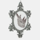 Pen and ink portrait of a Southern White Rhinoceros in a pewter snowflake Christmas ornament.