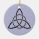 This holiday ornament features a pewter Trinity Knot intertwined with a silver annulet (circle), similar to the symbol seen in the TV show Charmed. The Trinity knot, long an Irish symbol, has become associated with Celtic Christianity as well as with magic and Wicca.