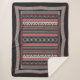 This ultra-plush Sherpa throw is a stunning piece of wearable art, drawing inspiration from the powerful, graphic, and geometric designs found in the ceramics and ritual artefacts of the Minoan civilisation on ancient Crete. The design features bold, alternating vertical bands of patterns, including repeating chevron triangles, stylised wave chains, and dense crosshatching in a dramatic palette of black, rich red, and creamy white. This stark, compelling colour scheme evokes the sophisticated ornamentation often found in the royal apartments of the Palace of Knossos.