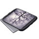 A photograph of a winter tree with the sun behind it, digitally manipulated to look like a fantastical spectre with its hand upraised, the bright light shining through the branches and darker grey and lavender clouds swirling around the "fingers".