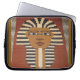 Image printed on electronics bag is from a photo of an original tapestry crochet wall hanging designed handmade and Copyright © by published designer Delores Chamblin. The picture of the unique handcrafted creation with ancient Egyptian pharaoh King Tut in natural earth tone browns is reproduced on the travel case.