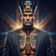 "This powerful and stylized design features a muscular figure depicted as an ancient Egyptian pharaoh, flexing both arms to showcase impressive biceps. The pharaoh wears a distinctive cobra headdress and a flowing red cape, with detailed ancient Egyptian jewelry and hieroglyphic elements. This design evokes a sense of strength, power, and the grandeur of ancient Egyptian civilization. It is versatile for a range of products, especially those with a fitness, historical, or mythological theme. Imagine it on workout apparel, historical artwork, gaming merchandise, or bold graphic designs."