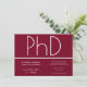 An invitation for a PhD graduation party. This minimalist invitation is burgundy and white. All the words and both colours can be customised.