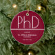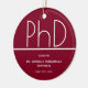 Keepsake ornament for a PhD graduation party with a burgundy and white design. This item is part of a graduation party collection that includes an invitation, photo announcement, paper napkins, place cards, and more. Customise these items, add them to your cart, and celebrate this major achievement.