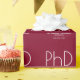 Wrapping paper for a PhD graduation party with a burgundy and white design. This item is part of a graduation party collection that includes an invitation, photo announcement, paper napkins, place cards, and more. Customise these items, add them to your cart, and celebrate this major achievement.