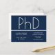 A postcard invitation for a PhD graduation party. This minimalist invitation is blue and white. All the words can be customised.