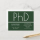 A postcard invitation for a PhD graduation party. This minimalist invitation is green and white. All the words can be customised.
