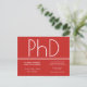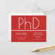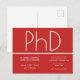 A postcard invitation for a PhD graduation party. This minimalist invitation is red and white. All the words can be customised.