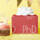 Wrapping paper for a PhD graduation party with a red and white design. This item is part of a graduation party collection that includes an invitation, photo announcement, paper napkins, place cards, and more. Customise these items, add them to your cart, and celebrate this major achievement.