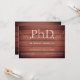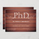 A rustic PhD graduation party invitation with white text and a wood background. Simply add your information, add this invite to your cart, and celebrate this major accomplishment.