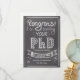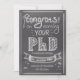 This product is a congratulation or greeting card for a successful PhD graduate. It is a nice gift from family, friends and colleagues at the PhD defence. This unique design features a chalkboard with the text "Congrats on earning your PhD" and a personalizable text.