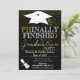 PHinally FinisheD PhD Doctorate Degree Graduation Party Invitation! A great invite to say congrats to the new doctorate degree graduate school graduate! Features a faux chalkboard background and festive graduation graphics!