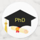 PhD Graduation Stars on Black. Blue & White Confetti