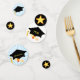 Elegant PhD graduation cap and glittering stars on black and white Table Confetti. Text ready to be personalised. Ideal for graduations! Shine like a star!