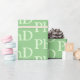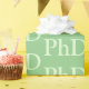 PhD graduation wrapping paper in shades of light green. The word PhD repeats in a pattern across the length of this wrapping paper.