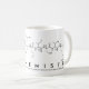 PhDChemistry spelled out in amino acids as P H D C H E M I S T R Y (Proline Histidine Aspartic acid Cysteine Histidine Glutamic acid Methionine Isoleucine Serine Threonine Arginine Tyrosine) on a mug for the scientist in you.
