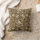 Throw pillow in a William Morris, Art Nouveau wallpaper design of pheasants and hares set among leaves, vines and flowers - beige on a chocolate brown background