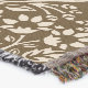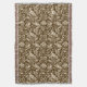 Throw in a William Morris, Art Nouveau wallpaper design of pheasants and hares set among leaves, vines and flowers - beige on a chocolate brown background