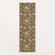 Yoga Mat in a William Morris, Art Nouveau wallpaper design of pheasants and hares set among leaves, vines and flowers - beige on a chocolate brown background