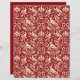 Paper in a William Morris, Art Nouveau wallpaper design of pheasants and hares set among leaves, vines and flowers, in cream / winter white on a deep Chinese red background