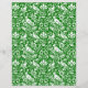 Paper in a William Morris, Art Nouveau wallpaper design of pheasants and hares set among leaves, vines and flowers, in white on a deep emerald green background