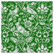 Fabric in a William Morris, Art Nouveau wallpaper design of pheasants and hares set among leaves, vines and flowers - white on a deep emerald green background