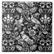 Large Ceramic tile in a William Morris, Art Nouveau wallpaper design of pheasants and hares set among leaves, vines and flowers - subtly textured white on a black background