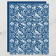 Paper in a William Morris, Art Nouveau wallpaper design of pheasants and hares set among leaves, vines and flowers, in white on an indigo / denim blue background
