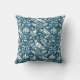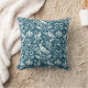 Throw pillow in a William Morris, Art Nouveau wallpaper design of pheasants and hares set among leaves, vines and flowers - subtly textured white on an indigo / denim blue background