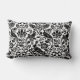 Lumbar pillow in a William Morris, Art Nouveau wallpaper design of pheasants and hares set among leaves, vines and flowers -black on a subtly textured white background