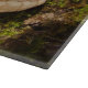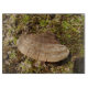 Phellinus igniarius mushroom, growing on a moss covered fallen oak tree, showing cracked cap