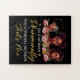 I did order the puzzle in a 30 Oversized pieces format - however the puzzle pieces were small and as a result the puzzle could not be presented at the time of the proposal as it wouldve been rather time consuming! The printing turned out fine. The majority of colours were crisp and clear except for the gold border around the text - which turned out somewhat greenish